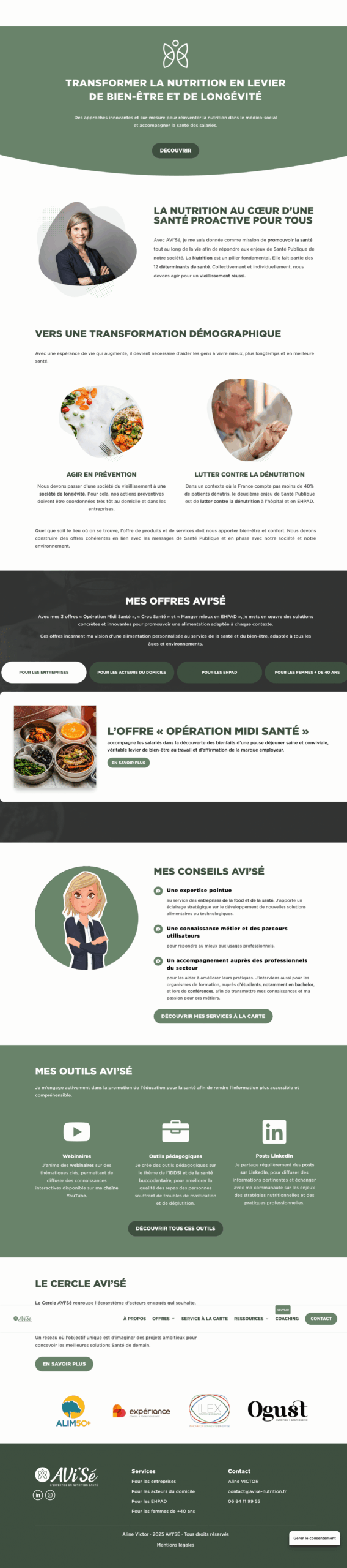 Création du site web pour le lancement de l’activité d’Avi’Sé – Nutrition Santé