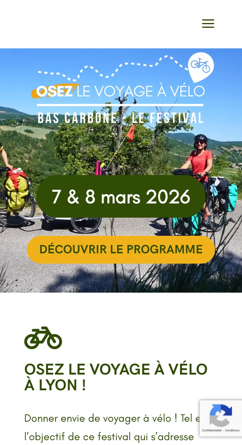 Le Festival Osez le Voyage à Vélo bas carbone est une évènement organisé conjointement par les associations La Maison du Vélo Lyon Métropole et l’AF3V. Il a pour but de promouvoir le voyage à velo auprès de tous les publics (familles, cyclistes aguerris, néophytes, …