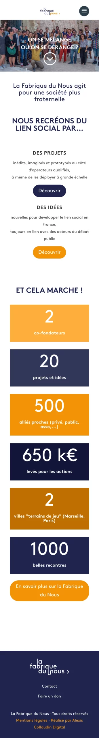 La Fabrique du Nous est une fondation qui soutient et accompagne des initiatives renforçant le vivre-ensemble, la cohésion sociale et les dynamiques citoyennes. Elle finance, structure et amplifie des projets engagés sur tout le territoire.