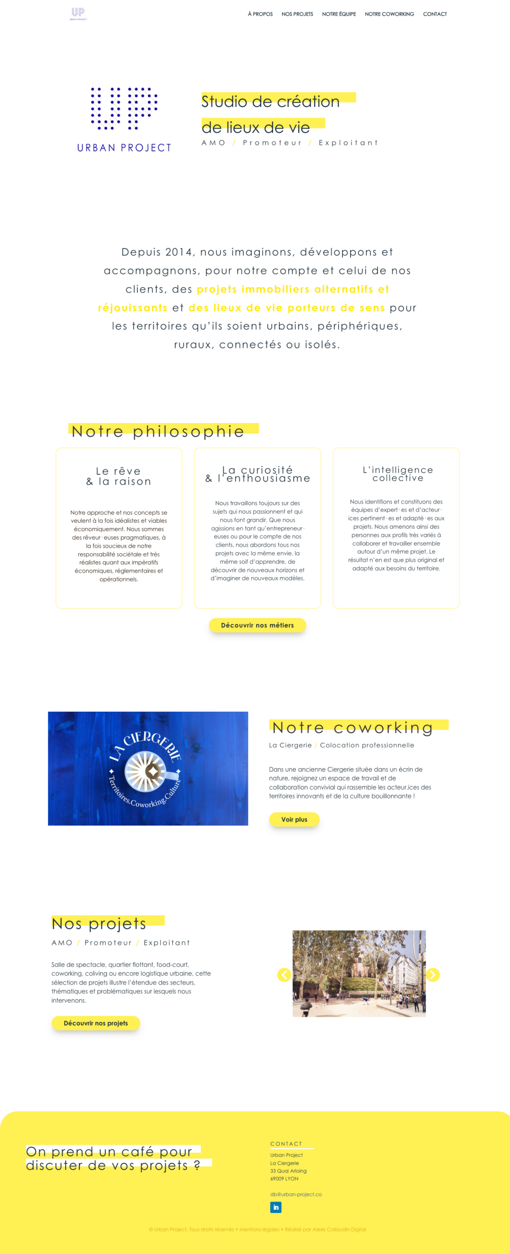L’identité du nouveau site, plus épurée devait permettre en un coup d’oeil de comprendre la vision et la proposition de valeur d’Urban Project.